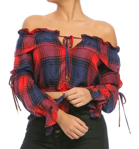 Si te gustan las blusas campesinas con un toque más moderno, esta opción de cuadros es perfecta para ti. Su diseño actualizado le da un giro a la clásica blusa campesina y te permite crear un look urbano y chic.